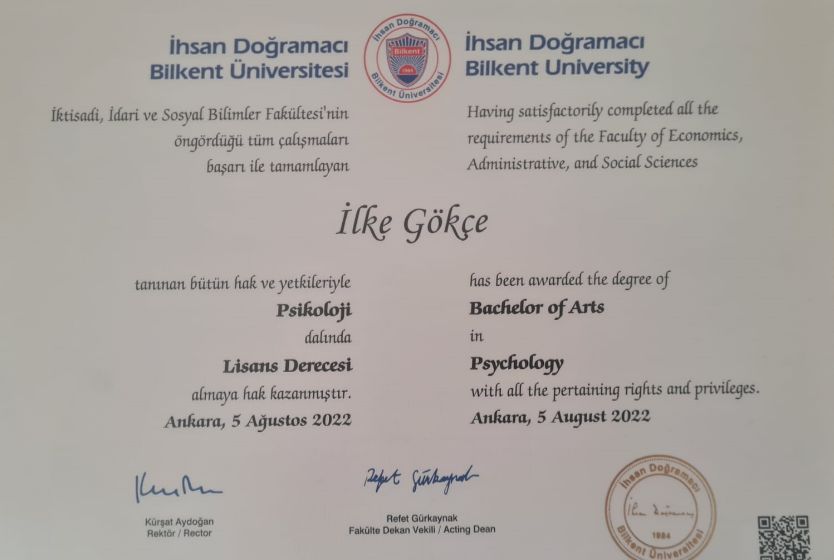 Psikoloji lisans eğitimini Bilkent Üniversitesi’nde tamamladım. Zorunlu stajımı Boylam Psikiyatri ve AMATEM hastanesinde yaptım. Lisansım sırasında Uluslararası Nörolinguistik ve Gestalt Psikolojisi Dergisi'nde (International Journal of Neurolinguistics and Gestalt Psychology) içerik ve araştırma yazarı olarak staj yaptım. Ardından yüksek başarı bursuyla İngiltere’de Bournemouth Üniversitesi’nden Klinik Psikoloji alanında tezli yüksek lisans yaptım. Bournemouth Üniversitesi’nde eğitimime devam ederken yarı zamanlı olarak üniversitenin bünyesinde araştırma asistanı olarak çalıştım. Sanal gerçeklik gözlüğünün katılımcıların OKB eğilimlerini ölçmesi üzerine etkinliğini ölçme üzerine araştırma yapma sürecinde görev aldım ve EMG gözlükleri ile Parkinson hastalığı olan bireylere duyguları tanıma ve gösterme üzerine eğitimler vermek amaçlı literatür taraması yaptım. Hakan Türkçapar'dan Bilişsel Davranışçı Terapi'de Temel, İleri Düzey, beceri kazandırma ve süpervizyon uygulaması eğitimlerini tamamladım.